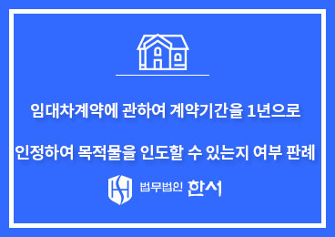 안녕하세요, 법무법인 한서입니다. 오늘은 임대차계약을 1년으로 하였을 때 목적물을 인도해야 하는지에 대한 판...